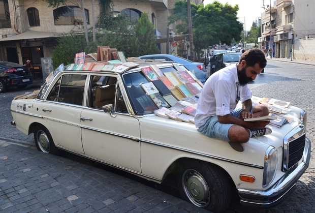 Bahdousheh started selling books on the road in February 2016. “First I had tables,” he tells MEE, but after realising he was occupying too much space on the crowded street, he decided to display the books on his car.