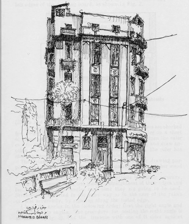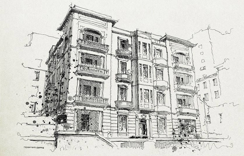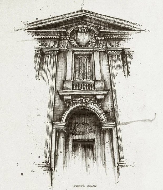 The sketches are part of a project called Description of Alexandria, through which Gohar, who is also a heritage researcher, documents the architectural legacy of Egypt's second-largest city, founded on the shores of the Mediterranean in the fourth century BC.