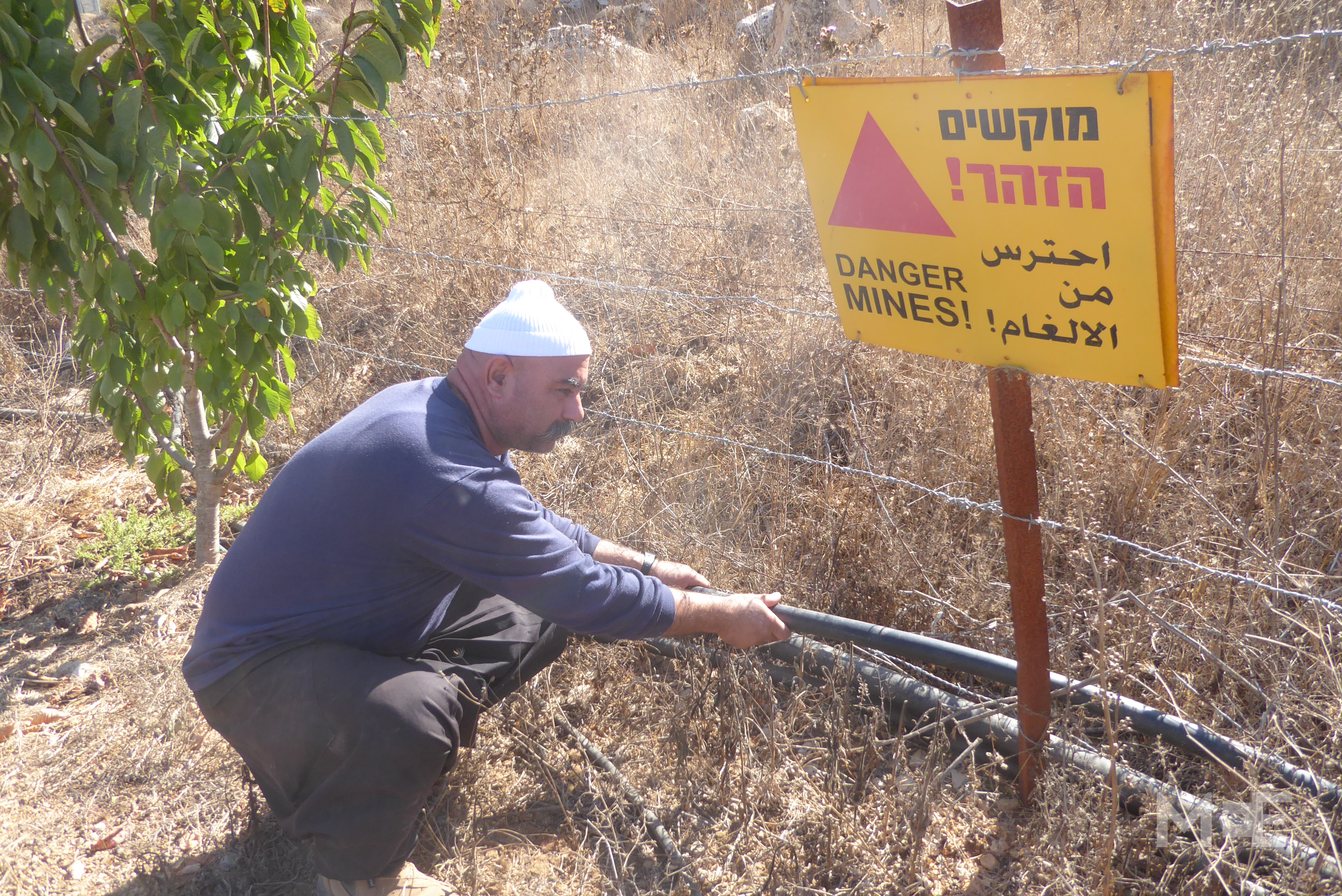 Druze farmer and irrigation expert Hallaby works within uncleared Israeli minefields (MEE/Matt Broomfield)
