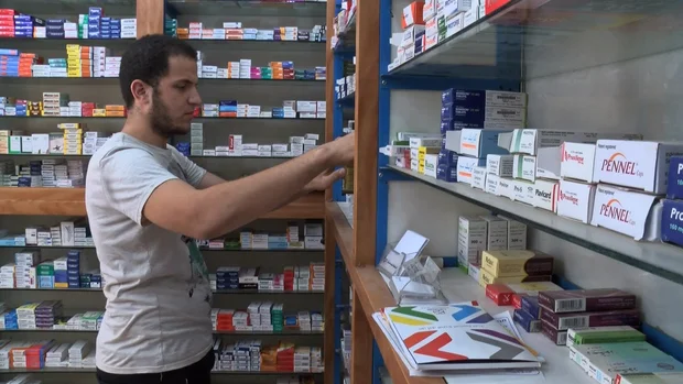 In an attempt to find his own solution to the crisis, pharmacist Medhat Hafez allows customers that he knows well to pay him in instalments.