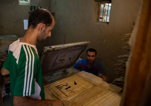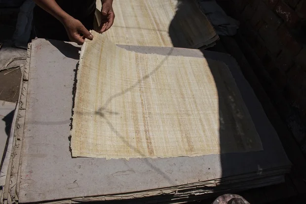 Once the papyrus sheets are dry, they can then go to the print shop (MEE/Mohamed Osam)