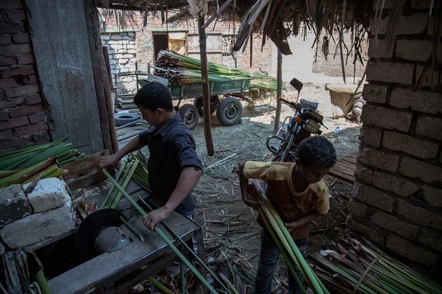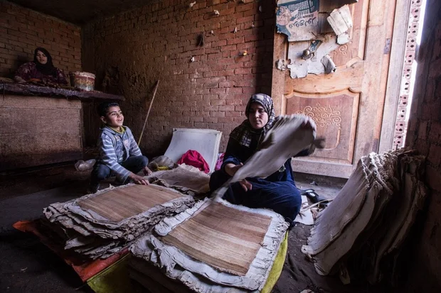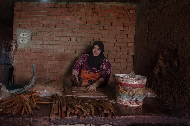 “We used to hire between five and 10 labourers to work with us besides the family,” says El Sayed, “but now we cannot due to the low demand and poor profits.” The work is now managed entirely by El Sayed's family. Children in the village usually help their parents make the papyrus, when they are not in school.