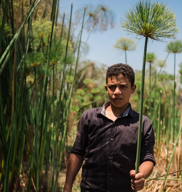 Ibrahim is the youngest member of the El Sayed family working in papyrus harvesting and production (MEE/Mohamed Osam)