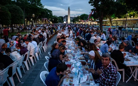 Although there are no hard and fast rules, it has become customary in big cities like Istanbul for local municipalities to organise huge communal iftar events. The Sariyer municipality adopted the novel idea of hosting the communal iftar meal in a different neighbourhood of the district every evening in order to allow more people to attend.