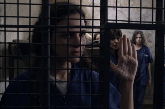 She is put first in a cell with Israeli female criminals – including drug addicts – where she is bullied. Then when she is put in a cell with Palestinian women she is also initially isolated, and treated with suspicion as a probable informant. Her cell-mates’ backstories are left to the audience's imagination, but their personalities vividly express their political status – the resistance fighter from Lebanon who has lost an arm, the grandmother with two grandsons in the men’s prison, the two inseparable school girls arrested in their classroom.