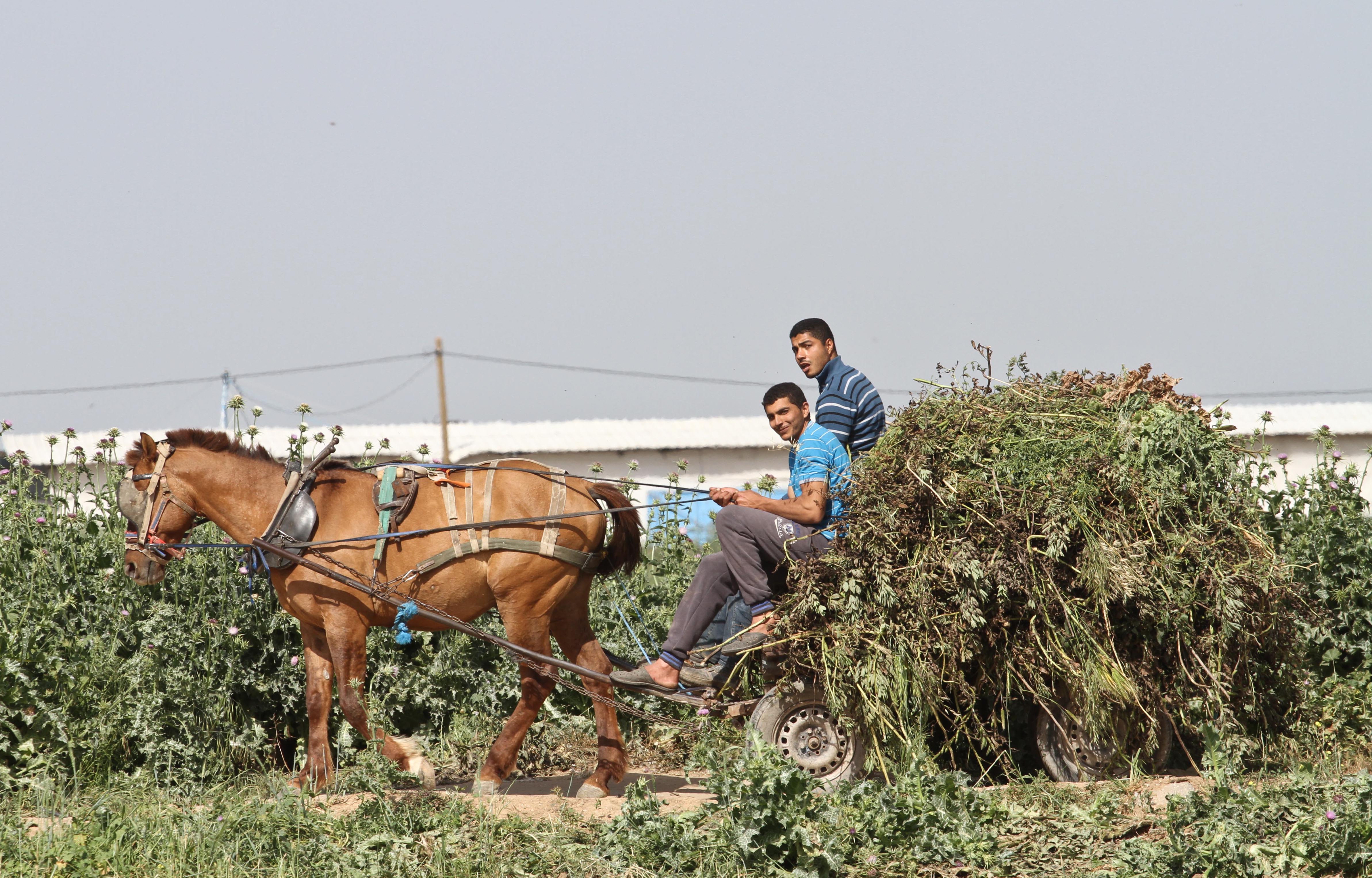 “This is my home, and I have nowhere else to go,” he insists as he and his six workers use a donkey cart to spread fertilizer on the ground.