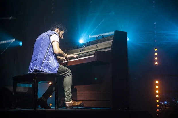 Faraj Suleiman, a Palestinian composer and pianist from the Upper Galilee, performs at PMX (MEE/Tessa Fox)