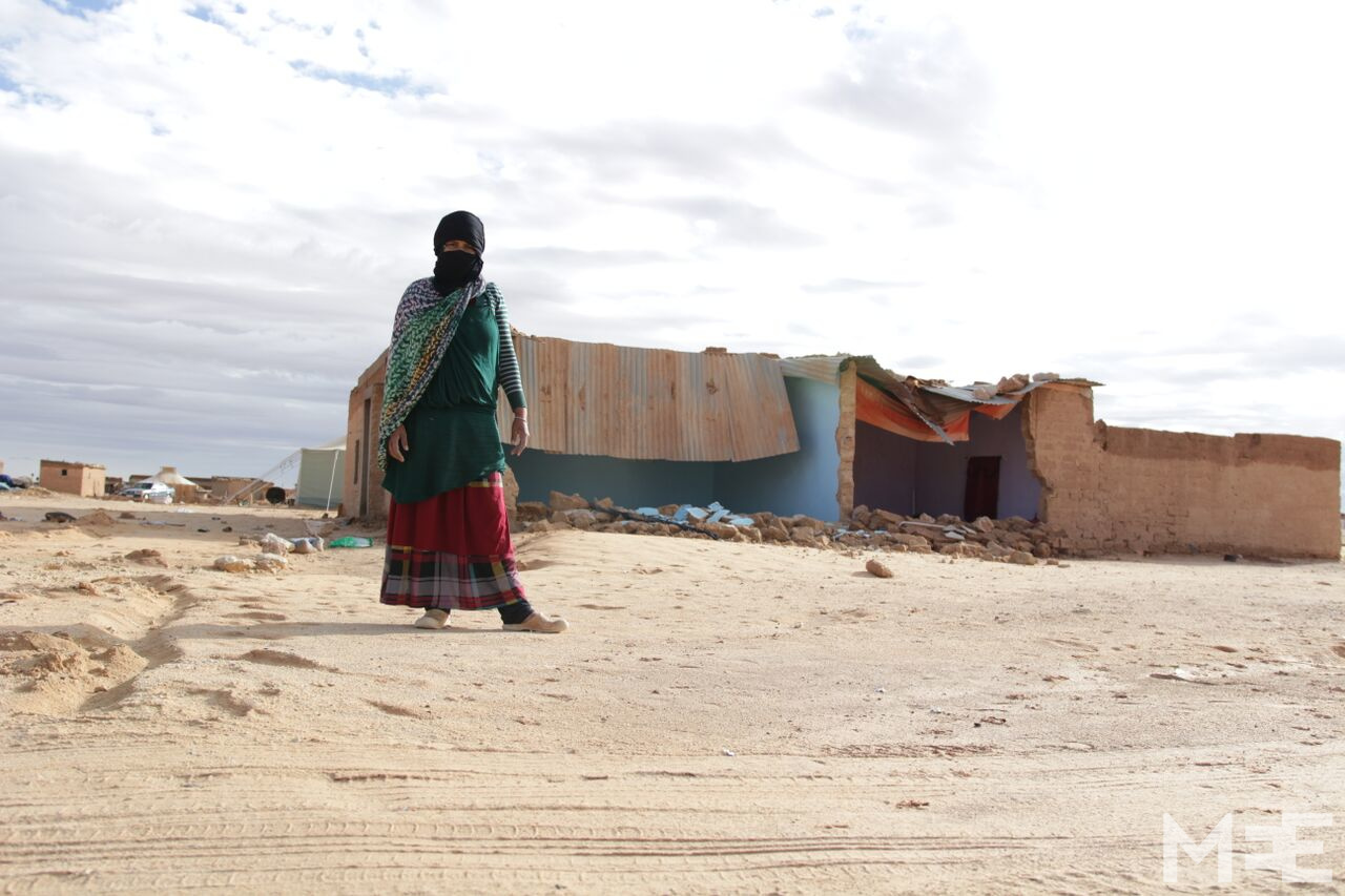 “I’m just grateful for the safety of my children,” Fatima Omar says as she stands, still in shock, outside of her now destroyed mud-brick house in Smara Refugee Camp in Algeria’s Tindouf province.