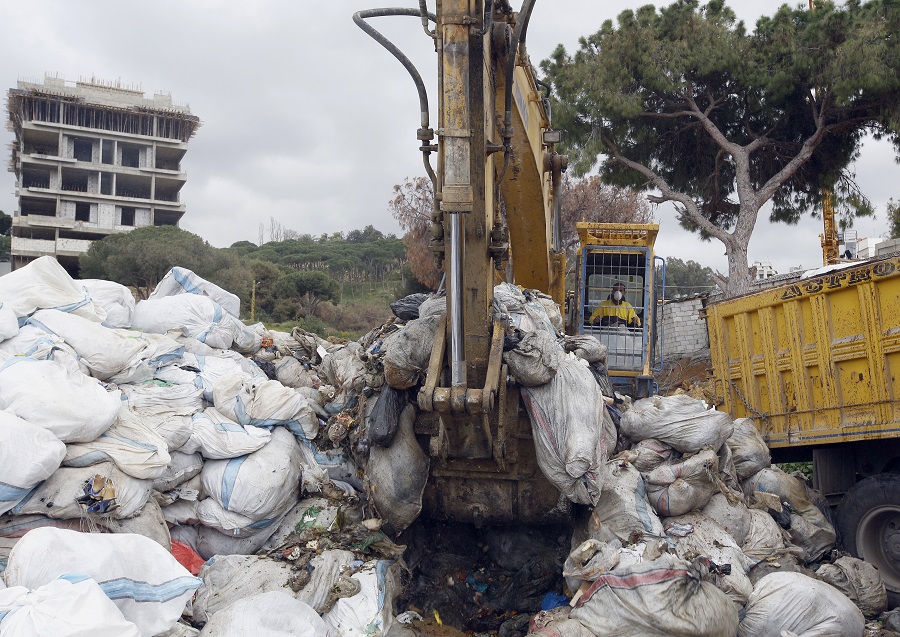 A worker uses a front-loader to move piles of garbage from Jdeideh, a Beirut suburb, to the country's largest landfill of Naameh, just south of the Lebanese capital, on 20 March 2016 (AFP)