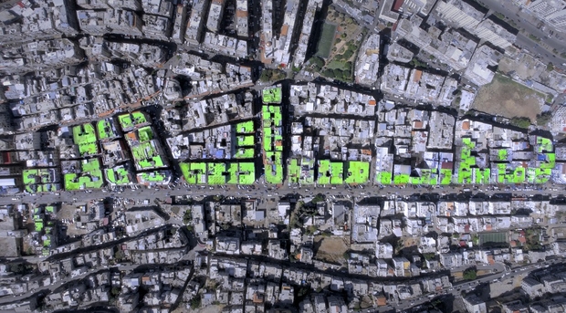 And that’s when they hit their first break. Thanks to some quirks in urban planning, the word salam lined up perfectly with existing structures in the area. There was a building with a courtyard perfect for the Arabic letter meem (the m in salam) and three identical rooftops in a row for the letter siin (for the s).