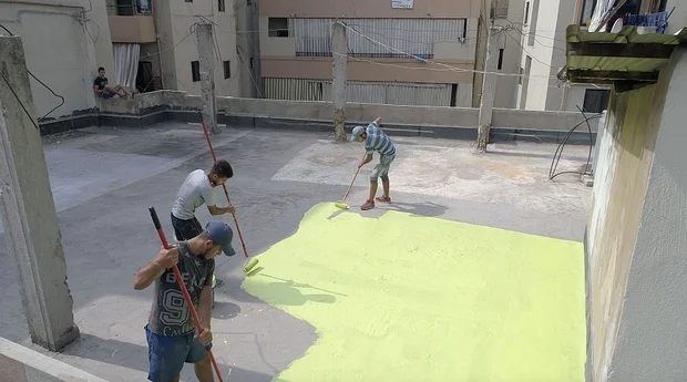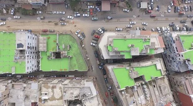 In addition to being visible from the sky, the green paint that they used was both anti-leakage and anti-UV, meaning that it deflects heat in the summertime. The fact the paint helped the living conditions of those in the buildings was something that Hussein said residents appreciated.