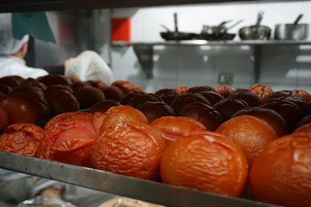 Trays of grilled tomatoes in Mayrig's kitchen (MEE/Sunniva Rose)