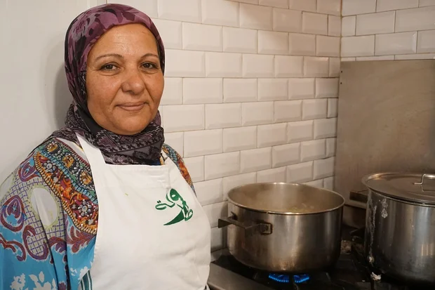 Oum Ali had not planned on becoming a chef at 39 years old. A housewife at the time, she had never gone to school, but her husband’s income was not enough to feed their family (MEE/Sunniva Rose)