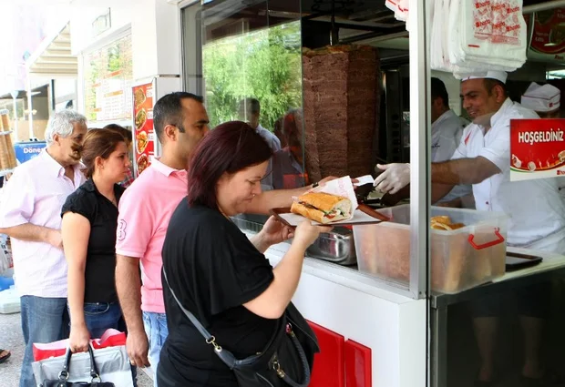 People queue to buy sandwiches at a local kebab reastaurant in July 2012 (AFP)