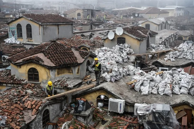 Employees work on the top of Istanbul's iconic marketplace, the Grand Bazaar during its renovation on 1 March, 2017 in Istanbul (AFP)