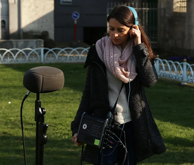 Pınar Cevikayak Yelmi in the field, recording sounds for the Soundscape of Istanbul Project (Photo courtesy of The Soundscape of Istanbul)