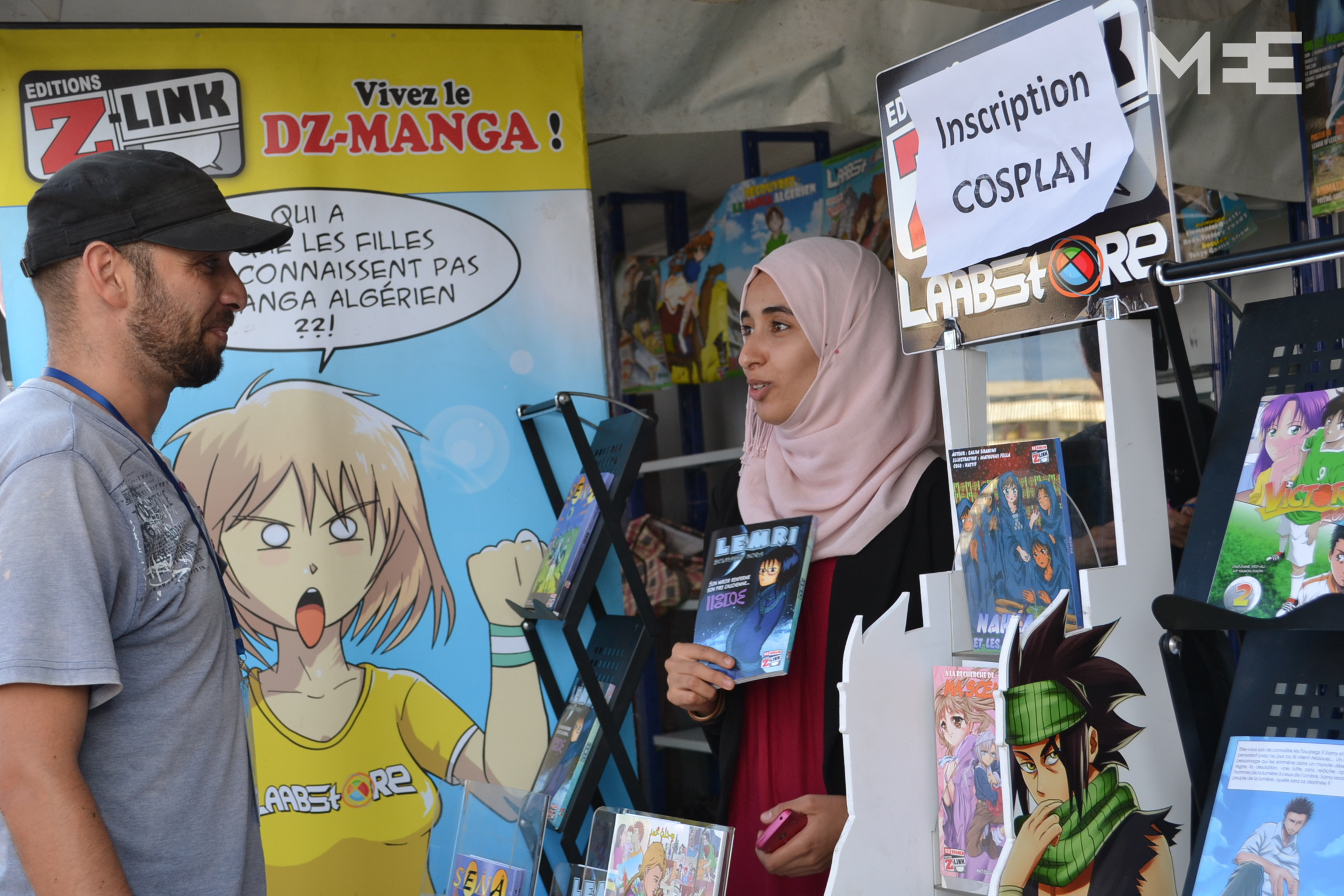 At the Z-Link tent, the crowd remains impressive throughout the days. Teenagers, both female and male, flock to the table displaying copies of Laabstore Magazine, Z-Link’s monthly review specialising in Manga, cartoons and game. A group of boys comment on Laabstore’s front page, showing a woman dressed with an Algerian traditional outfit. "Some have still no clue that Algeria produces its own Manga comics," a hostess, wearing a custom black polo with the logo of the publishing house, told MEE.