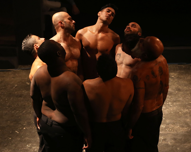 Between each skit, the actors gather up and start to repeatedly mime the same actions to illustrate their life-sentence frustration: one is pacing while talking to himself, another is chanting, an elderly man is screaming with his head in his hands, and another man is reading legal documents with his eyes wide-open.