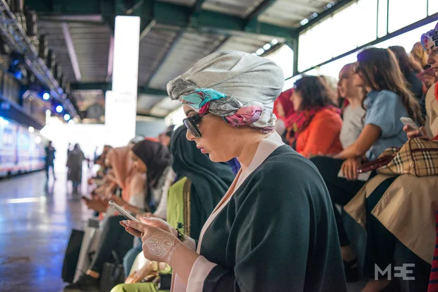 Most of the attendees are wearing colourful silk hijabs and are holding the latest smartphones, ready to record what is about to happen. When the lights come on, models from all over the world start walking the makeshift catwalk while dressed in modest outfits.