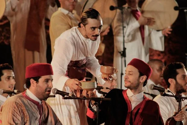 All garbed in traditional Tunisian clothes, with men wearing red chechiya hats and women wearing white robes reminiscent of Roman togas, the Hadhra performers led the audience into a communal trance.