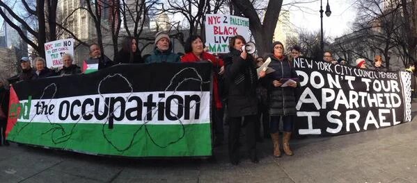 Dozens of US groups opposed to their city councils touring Israel have been protesting (Twitter.com/OccupyWallStNYC)