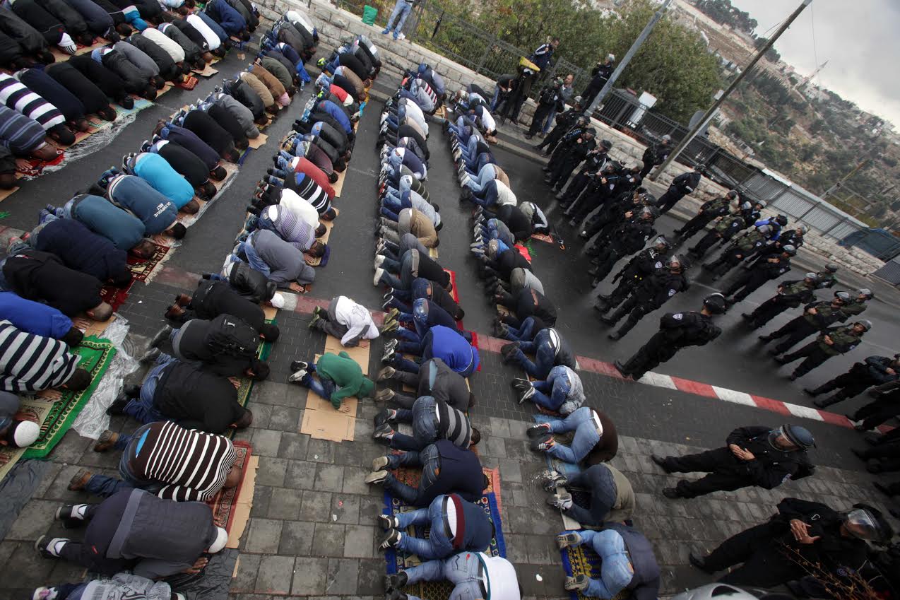 Later in the day, small clashes in Wadi Joz were reportedly suppressed by Israeli forces. The old city, in some places already running with water several inches deep after the first winter rain, was quieter. Palestinian men under fifty who live in the old city were today allowed to pass inside the walls, but this didn't mean permission to pray at al-Aqsa, and those who live only a few hundred metres from the Mosque also prayed in the streets.
