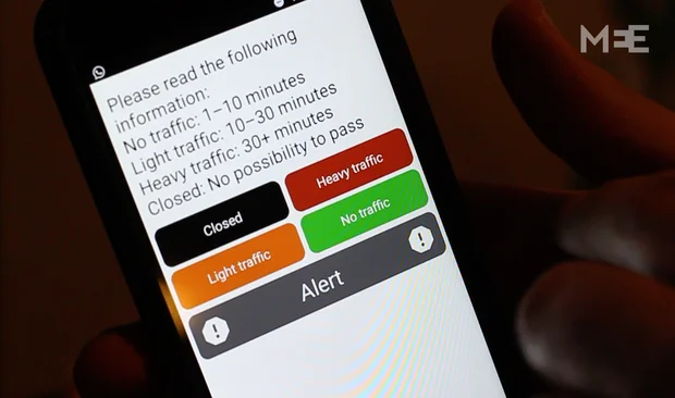 Sader explained how the design is based on a simple colour coding system; green signifies no traffic, orange means there is light traffic, red means heavy and black means the checkpoint is closed.