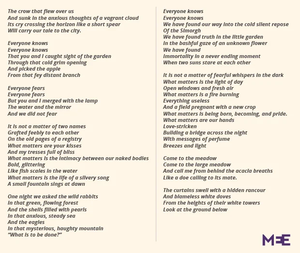 A translation of the poem Conquest of the Garden, courtesy of Professor Farzaneh Milani