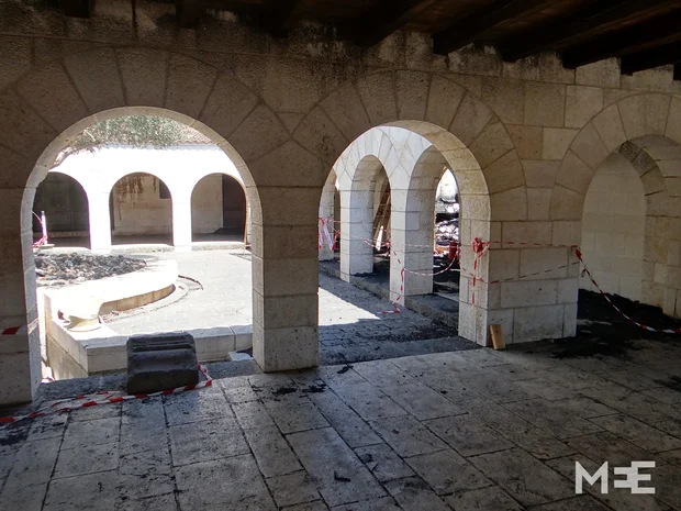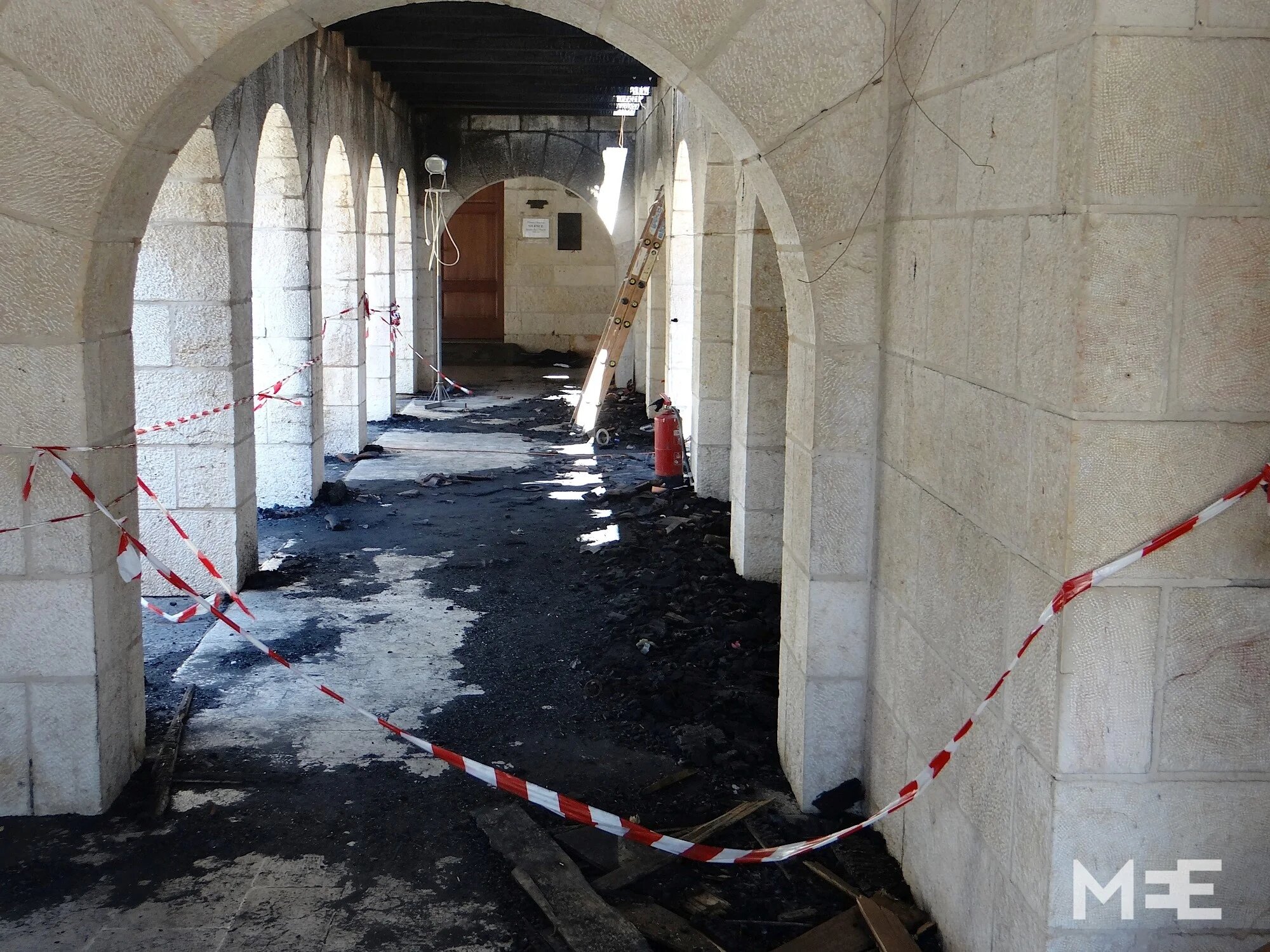 A few days after the incident took place a strong burning smell still lingered on. At first the Palestinian hausmeister, who keeps guard at the site, didn't want to open the gate to let journalists in. “Police and insurance officers want the place to remain cordoned off,” he said. But when Middle East Eye asked him about the details of the incident, he allowed us in to take a few pictures.