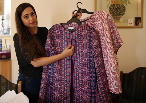 As the Palestinian territories lack the equipment she needs, she has her fabrics printed in Dubai.