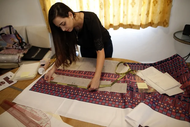 "I wanted to do something new, modern, never seen on the market," the 27-year-old said, as she measured out fabric at her studio in her family home in Ras al-Amud, East Jerusalem.