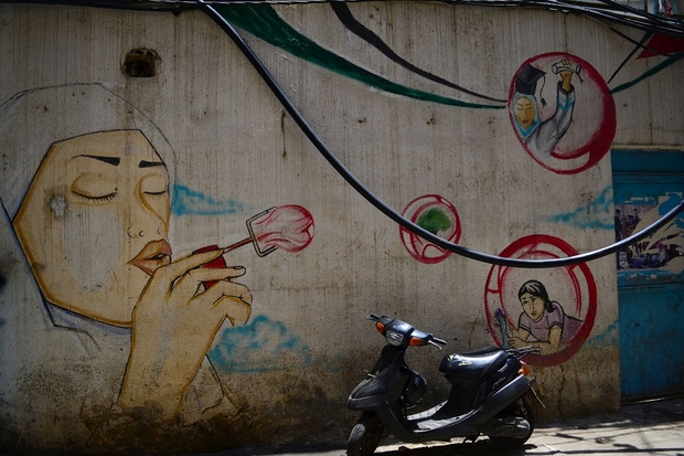 “There aren’t many ways of resisting, so murals raise awareness and are our form of resistance,” says Mohammad Daher, co-founder of al-Naqab Center for Youth activities, which was established in 2013 to help provide cultural and educational activities for youth in Burj al-Barajneh.