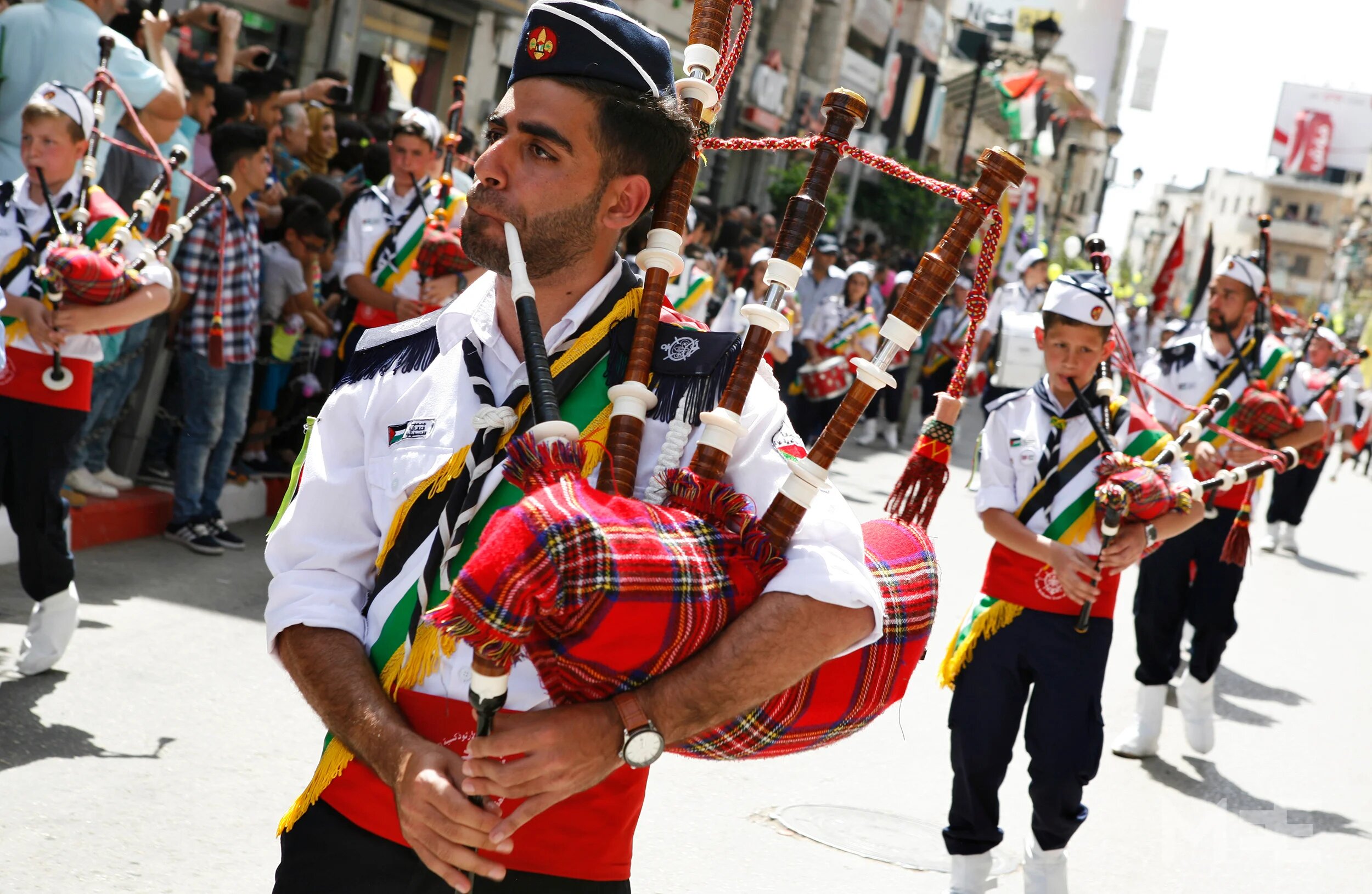 RAMALLAH, Occupied West Bank - Beating drums, loud bagpipes and shrill trumpets filled the air in Ramallah on Saturday, when 14 lively Kashaf (Scouts) marching bands paraded in front of an audience of thousands of Christian and Muslim Palestinians. Spectators began lining the streets during the hottest hours of the day in order to attend the traditional Sabt al-Nour parade marking Orthodox Easter; and for the first time in years, out of 14 Scout groups, one was from Gaza.