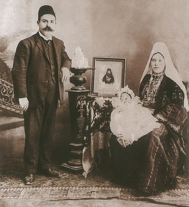 Al-Ama began using paintings and photographs from his and other Bethlehem collections to pinpoint the establishment of the studio in 1907. Before this, any studio photographs of Bethlehemite families he found had been taken in Jerusalem by Krikorian, an Armenian, or Raad, who was Lebanese.