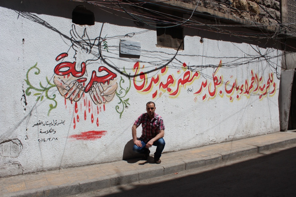Painter Abu Nadim, who joined the revolution when it began back in 2011, became famous for working tirelessly, writing slogans on posters for people to take to protests.