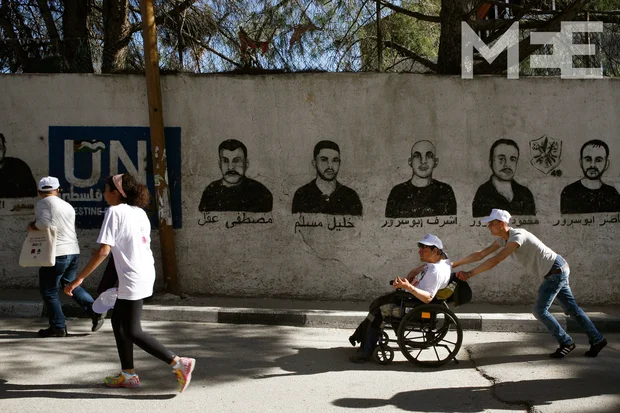 Others added a creative touch. Mahmud Abu Shamsia, an actor with the Al Basta theatre company, walked the 10km route pushing a portable checkpoint equipped with phone, razor wire and interrogation cubicle. "We do street theatre and since the subject of this marathon is 'right of movement', I came with this checkpoint," he told MEE. "We can't move and this checkpoint is a symbol of that."