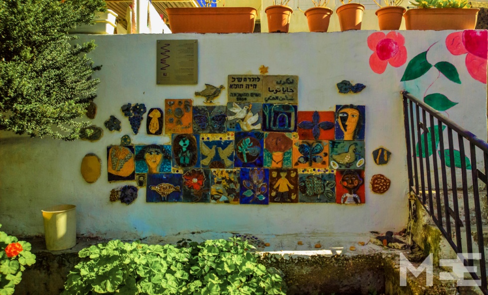 The workshop of the Wadi Nisnas Ceramic Circle created a memorial to Chaya that rests on a wall of a home on the main street of Wadi Nisnas. Featuring brightly coloured ceramic plates depicting faces, fruits and animals, the memorial is hard to miss.