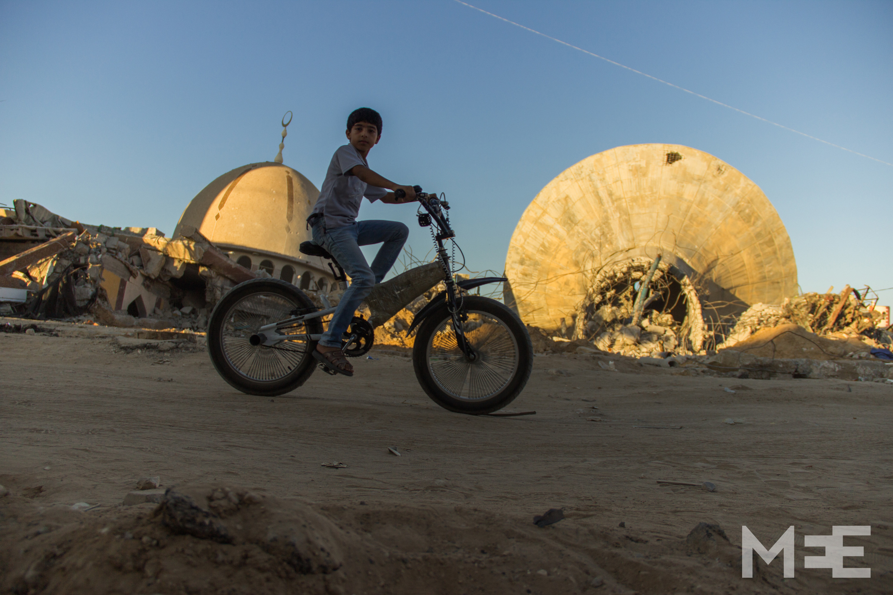 The tantalising smell of falafel fills the evening air. At the outskirts of the village, a woman starts to make bread in a "taboon", a traditional mud oven. Soon, the delicious produce is broken into pieces and distributed to the children, most of whom will soon be asleep in tents. The grown-ups sit in front of their mostly destroyed homes to chat before turning in. Some children point to vehicles in the near distance, and tell MEE these are Israeli jeeps. The border, and the source of any future attack, is only a few hundred meters away.