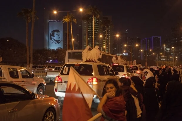 Qatari men and women flooded the streets in large groups, to welcome the emir of Qatar back home (MEE//Sebastian Castelier)