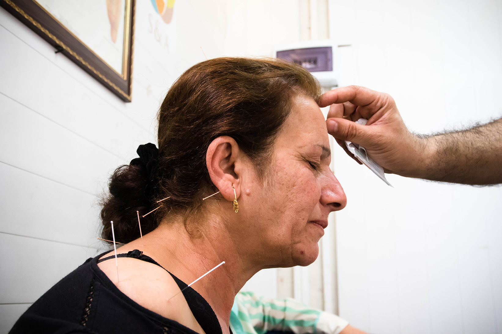 Despite the hustle and bustle of camp residents exchanging life tips and engaging in chatter, Mostafa and Vassail manage to insert the required needles on their patients that will stimulate energy points and relieve pain. “The clinic has got a reputation outside of the camp because it proved itself successfully,” Vassail says proudly.