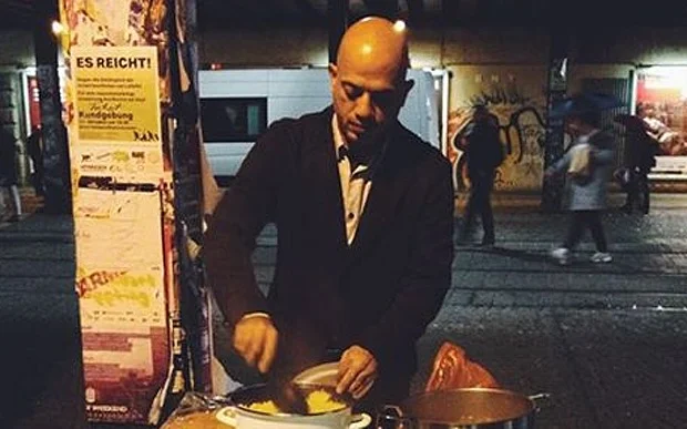 Another Syrian refugee, Alex, is helping the homeless in his adopted home of Berlin, Germany. His mission is to "give something back to the people that helped" him. His photo has been shared online thousands of times.