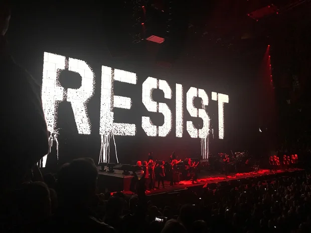 A protestor was peacefully ejected from the venue after he unleashed a banner stating "Boycotts Don’t Scare Us," but Waters finished with a rhetorical flourish.