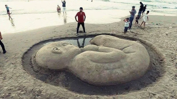 Sbeata's first attempt at a sand sculpture came about by chance one day while he was playing in the sand. He realised that the beach was a destination for many vacationers and citizens and therefore a perfect place to practice his art and raise awareness about the Palestinian cause.