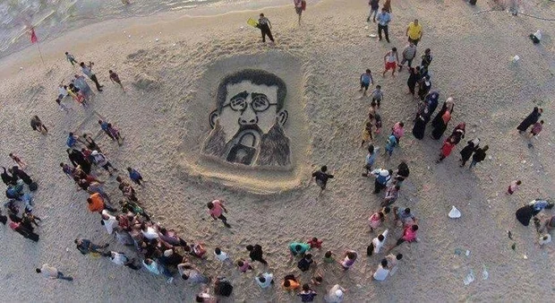 "The first picture I published on social media sites was on the 1st of January 2015, which won the admiration of many," Sbeata said. By writing '2015' in the sand that year on New Year's Day, Sbeata wanted to convey the message that he hoped the year was going to be one of peace for Palestine.