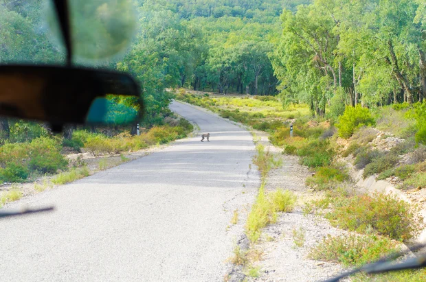 RIF MOUNTAINS, Morocco - The team went back and forth peering between pairs of binoculars and cameras, taking brief pauses to scribble in their notebooks. They were surveying a grassy opening in Bouhachem Forest, in the highlands of Morocco’s Rif Mountains, for Barbary macaques, the monkeys native to North Africa. On this occasion they tallied a sum of 60 macaques crossing the road that hugs the perimeter of the park.