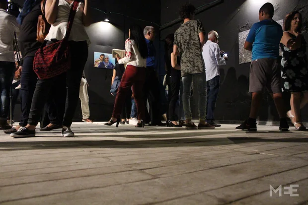 Haifa’s former City Hall is full of guests attending the 'People of the Sea' photography exhibition (MEE/Mary Pelletier)