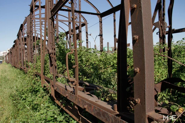 The highway’s constructors use the station as a depot for reinforcing bars and ironware. The train station lost its roof years ago, and now the walls are in peril. A big generator leans over one of the station’s walls, and a huge drilling rig is digging a well near the station’s water tank. Doorways and windows are now just empty frames.