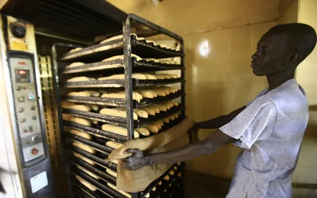 A man prepares bread in a bakery in the northern Sudanese city of Bahri (MEE/Jerzy Wierzbicki)