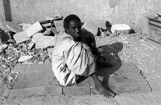 A man is begging for money just outside Omdurman's bazaar (MEE/Jerzy Wierzbicki)