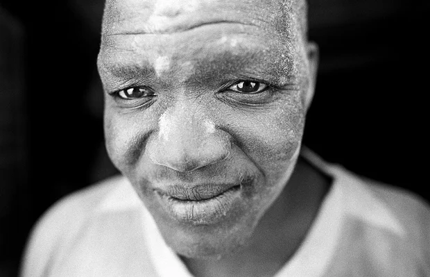 A man working in a lime factory in Abu Rof, Omdurman, takes a quick break (MEE/Jerzy Wierzbicki)